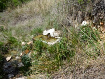 Encontramos esta fuente en la ladera de la montaña, y vierte sus aguas sobre un pequeño pilón de piedra.